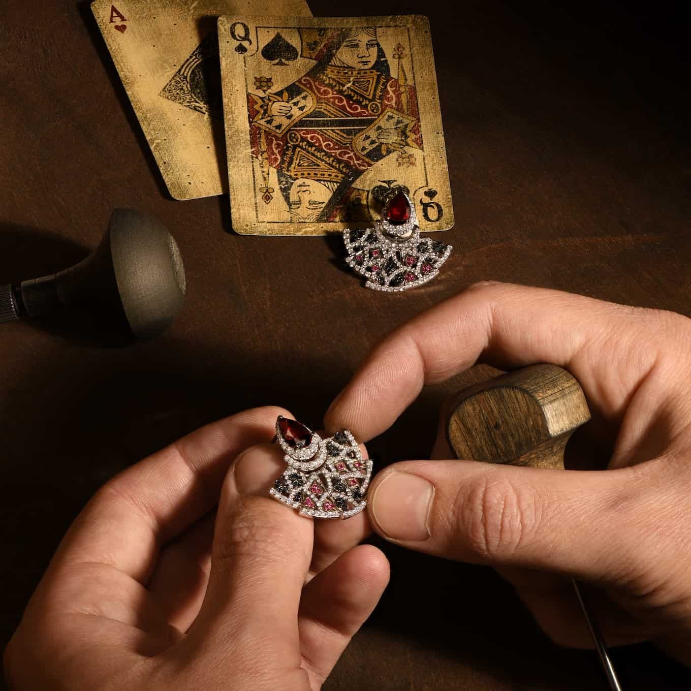 Вдохновившись мировой премьерой “Пиковой дамы” в Большом театре, мастера Parure Atelier создают сверхъестественно харизматичную коллекцию украшений, пронизанную эстетикой игральных карт. В ней соединяется и обаяние, и театральность, что-то загадочное и даже мистическое, как в знаменитой повести А.С. Пушкина.
