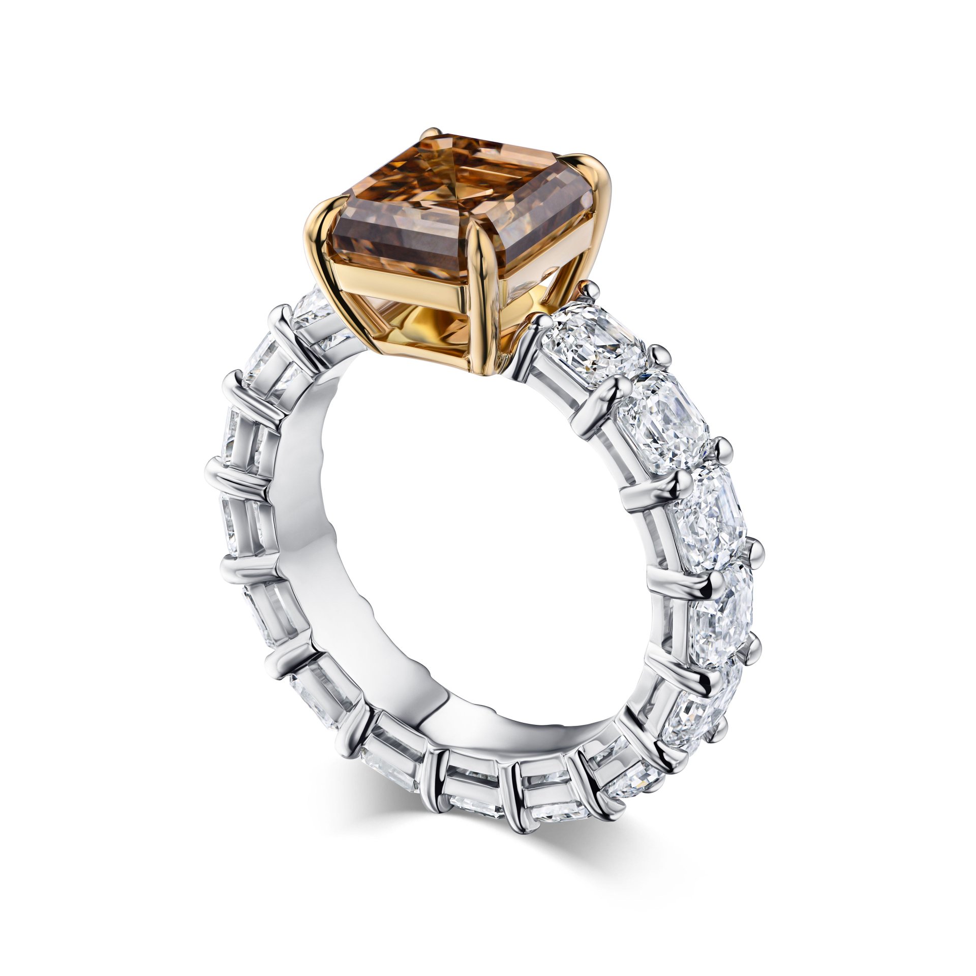 Кольцо с коричневым бриллиантом 4.01 карат привлекает внимание благодаря выразительному центральному камню необычного оттенка. Коричневый бриллиант весом 4.01 карата отличается четкой огранкой, которая подчеркивает глубину и игру света в каждом гране. По бокам расположены несколько прозрачных белых бриллиантов, аккуратно закрепленных в белом золоте, что создает гармоничный контраст и усиливает визуальное восприятие центрального камня. Лаконичный дизайн позволяет сохранить фокус на уникальном оттенке главного камня, а сочетание металла и камней делает изделие универсальным для разных образов. Это украшение — результат работы ювелирной дизайн-студии Parure Atelier, где внимание к деталям и качество исполнения всегда на первом месте.