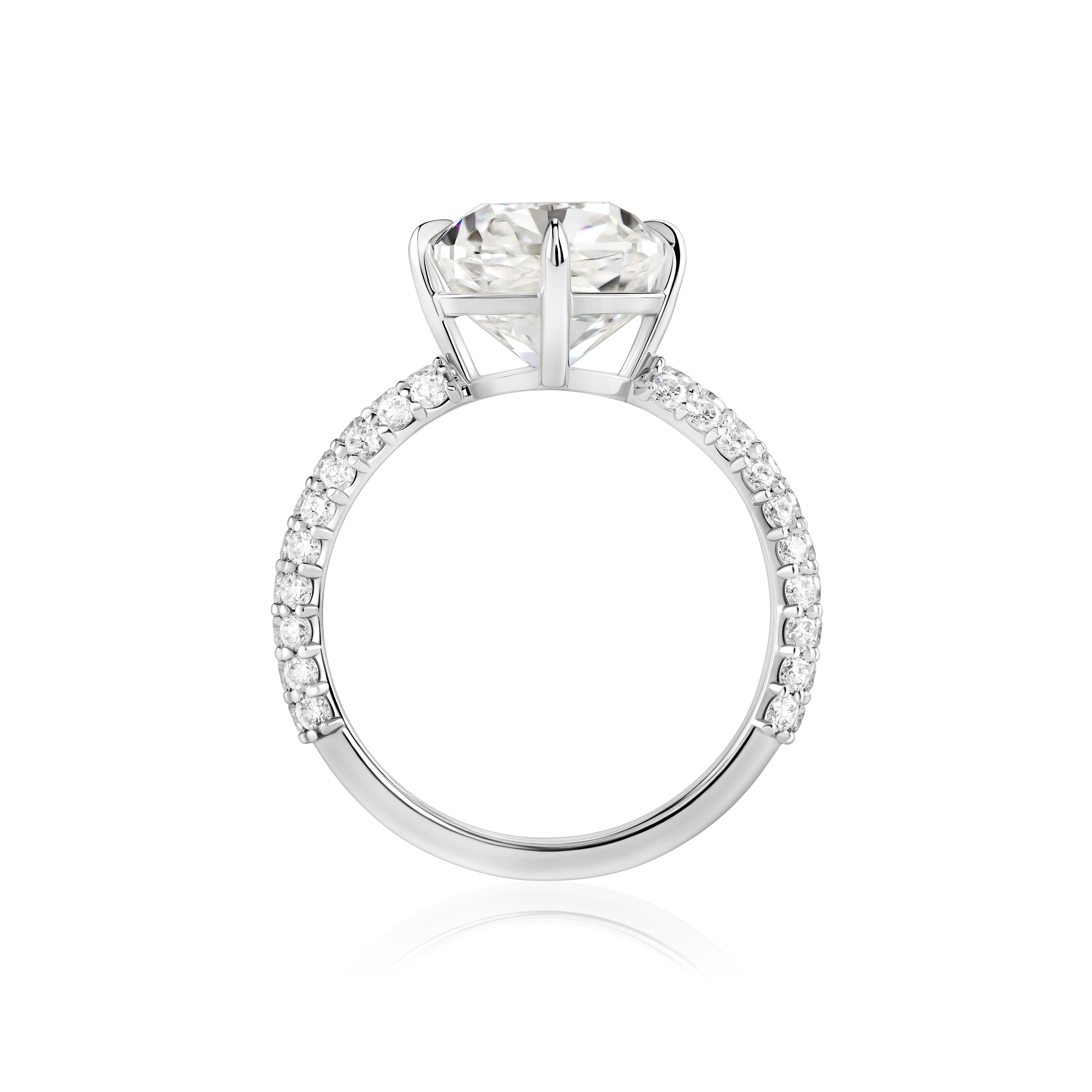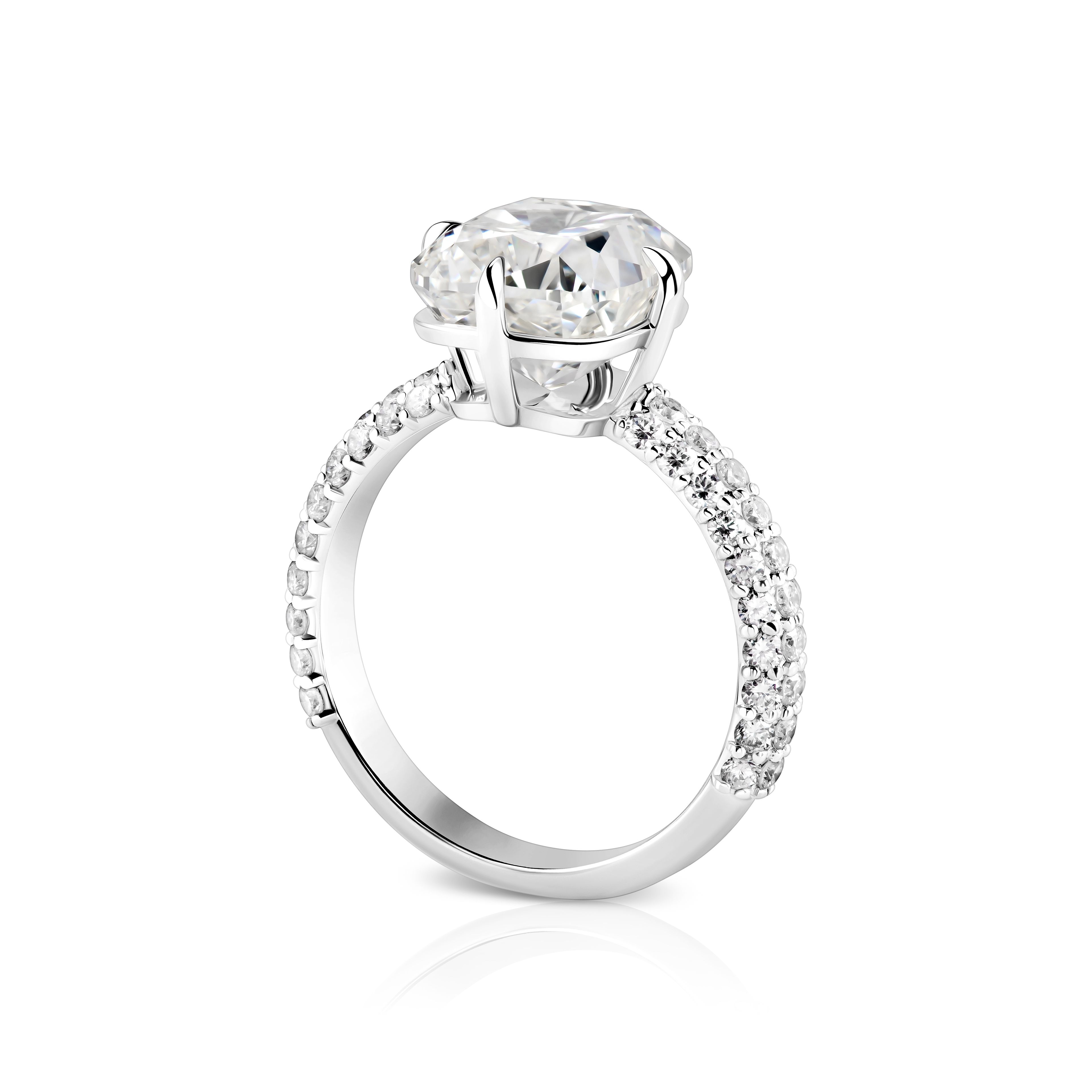 Кольцо с бриллиантом 5 карат — это воплощение утончённой элегантности и изысканного дизайна. Центральный бриллиант весом 5 карат, сияющий в обрамлении белого золота, привлекает внимание своей чистотой и блеском. Его великолепие подчёркивают боковые бриллианты, общей массой около 0,70 карата, выполненные в круглой огранке. Эти мелкие камни придают кольцу дополнительный шарм и глубину, создавая игру света, которая завораживает с первого взгляда.