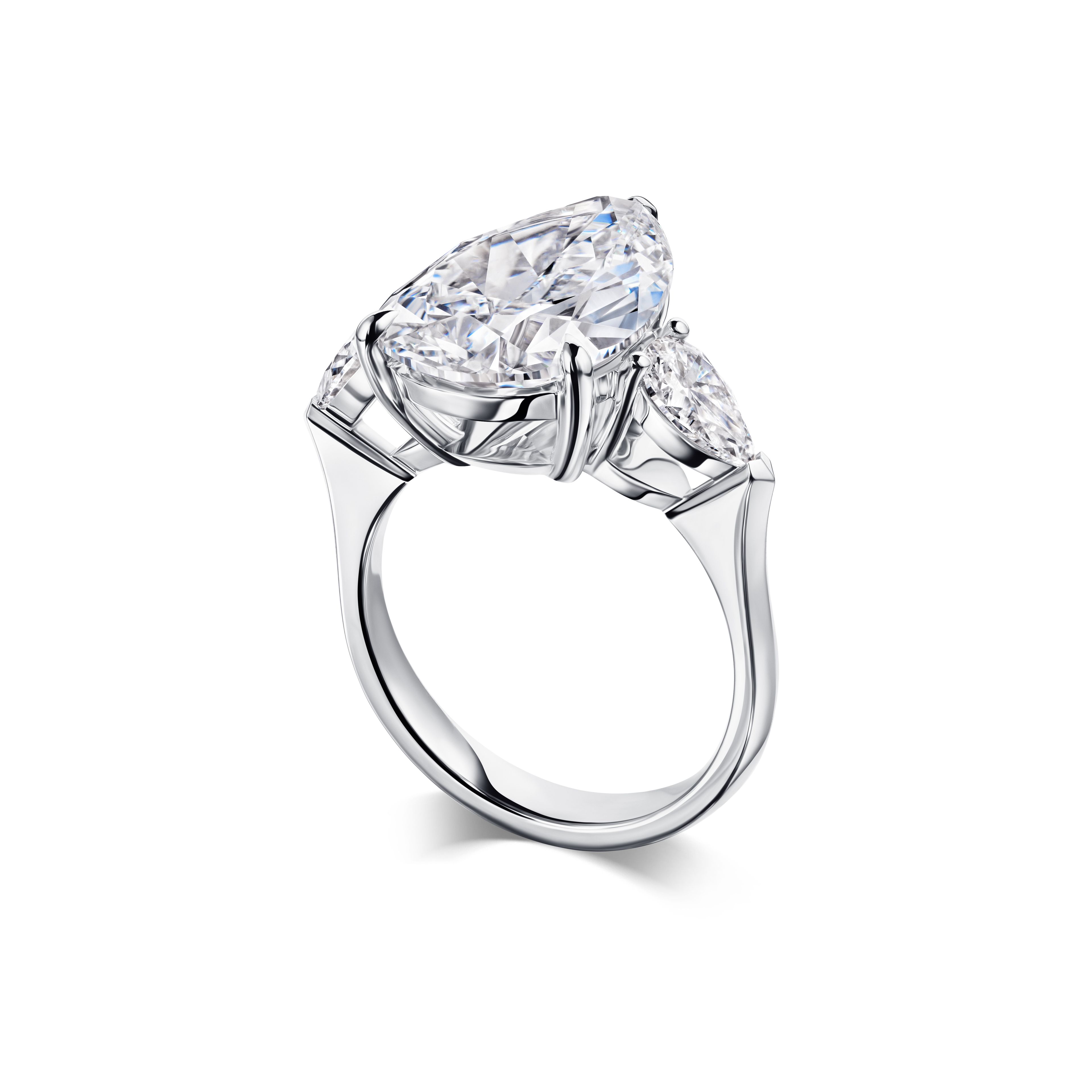 Кольцо с бриллиантом 6.03 карата — это воплощение утончённой элегантности и мастерства. Центральный бриллиант в форме груши, весом 6.03 карата, притягивает взгляд своей безупречной чистотой и ярким блеском. Его сияние усиливается двумя боковыми бриллиантами, которые гармонично дополняют композицию, создавая эффект безграничной световой игры.