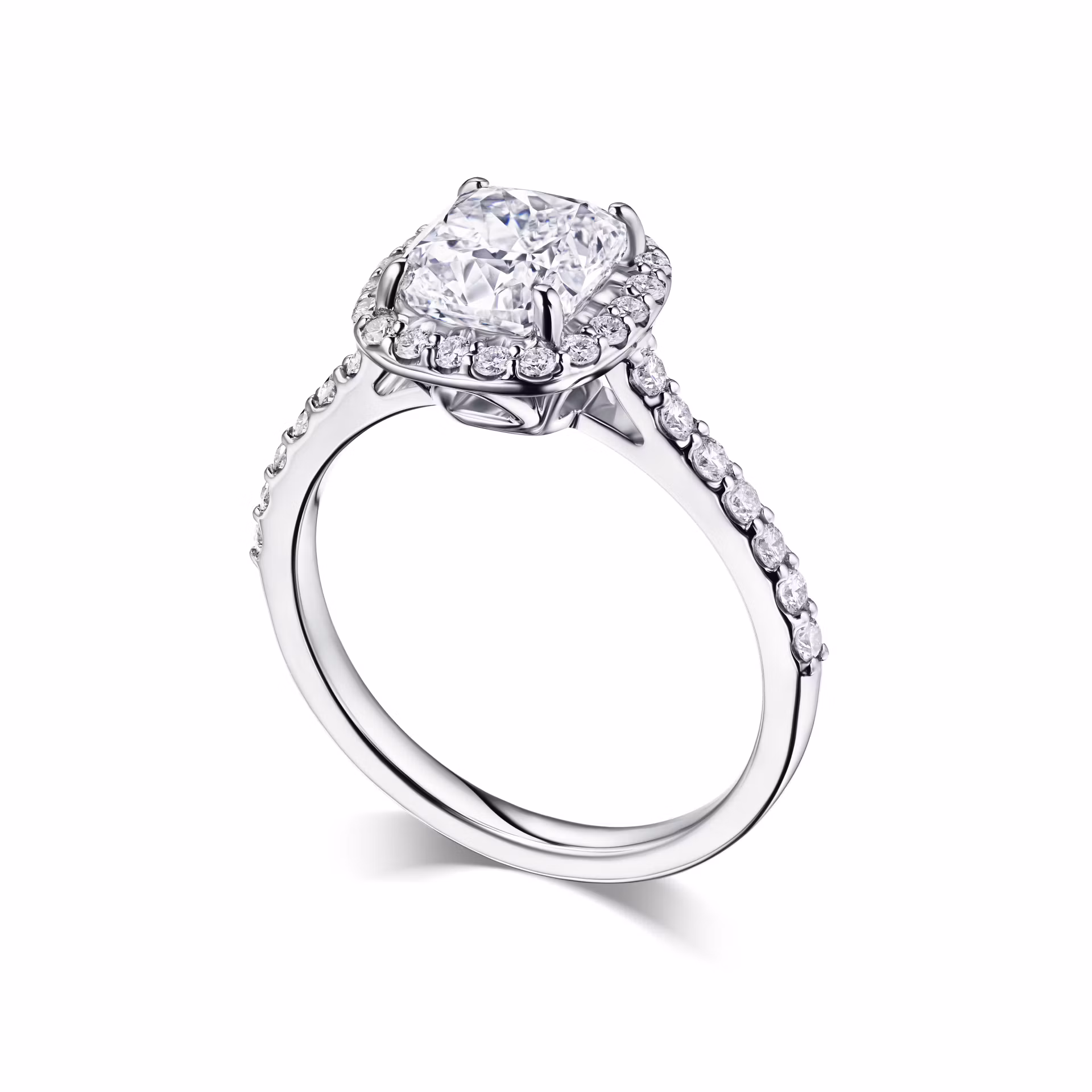 Кольцо с бриллиантом 1.71 карат — это воплощение элегантности и утонченности. Центральный бриллиант весом 1.71 карата сияет в обрамлении белого золота, создавая эффектный акцент. Камень квадратной огранки окружен россыпью мелких бриллиантов, что придает изделию дополнительный блеск и глубину.