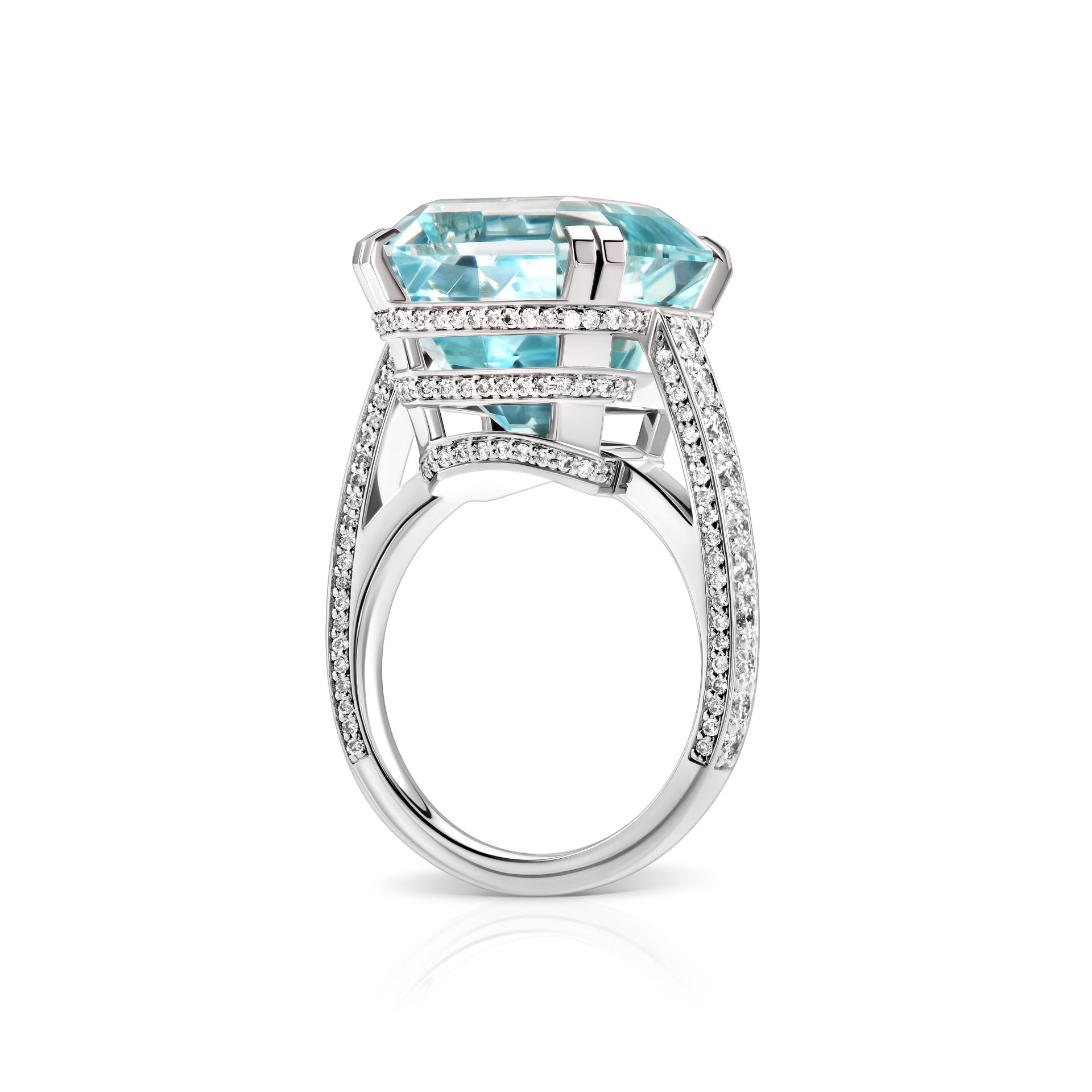 Артикул: R2941Кольцо «The Element of Water» — воплощение чистоты и элегантности. В центре композиции — аквамарин весом 11.64 карата, сияющий ледяной синевой, словно отражение безмятежного океана. Его изысканная огранка привлекает внимание и завораживает игрой света. Боковые бриллианты, общим весом около 0.94 карата, изящно подчеркивают центральный камень, добавляя изделию утонченное сияние.