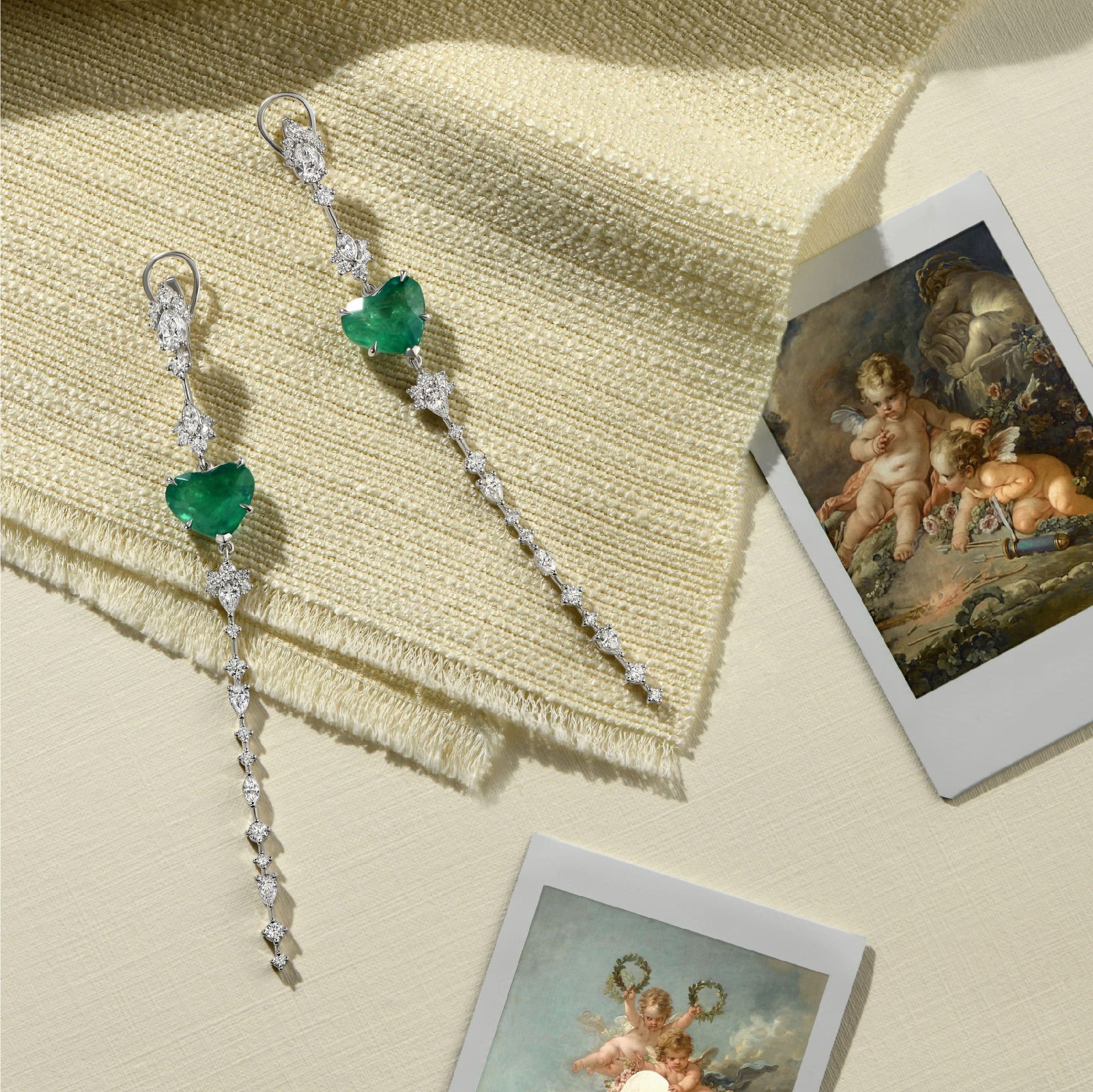 Серьги с изумрудами 6.46 и 5.99 карат — воплощение изысканности и утонченности. Эти длинные серьги из белого золота привлекают внимание своим элегантным дизайном и блеском. Сердцевина каждого украшения — изумруд в форме сердца, который излучает насыщенный зеленый цвет. Камни весом 6.46 и 5.99 карата создают гармоничный акцент, подчеркивая природную красоту и уникальность изделия.