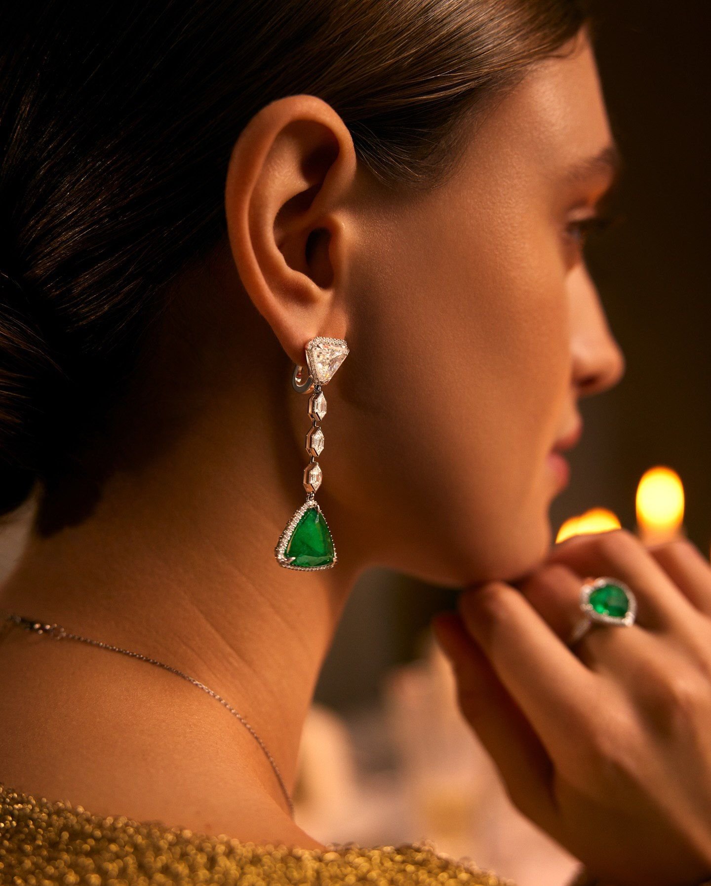 Серьги с изумрудами 7.99 и 7.07 карат — это воплощение утонченной элегантности. Великолепные изумруды, ограненные в форме триллиона, становятся центральным акцентом, привлекая внимание своей насыщенной зеленью. Каждый камень, весом 7.99 и 7.07 карата, окружён сияющими бриллиантами, которые подчеркивают их красоту и глубину цвета.