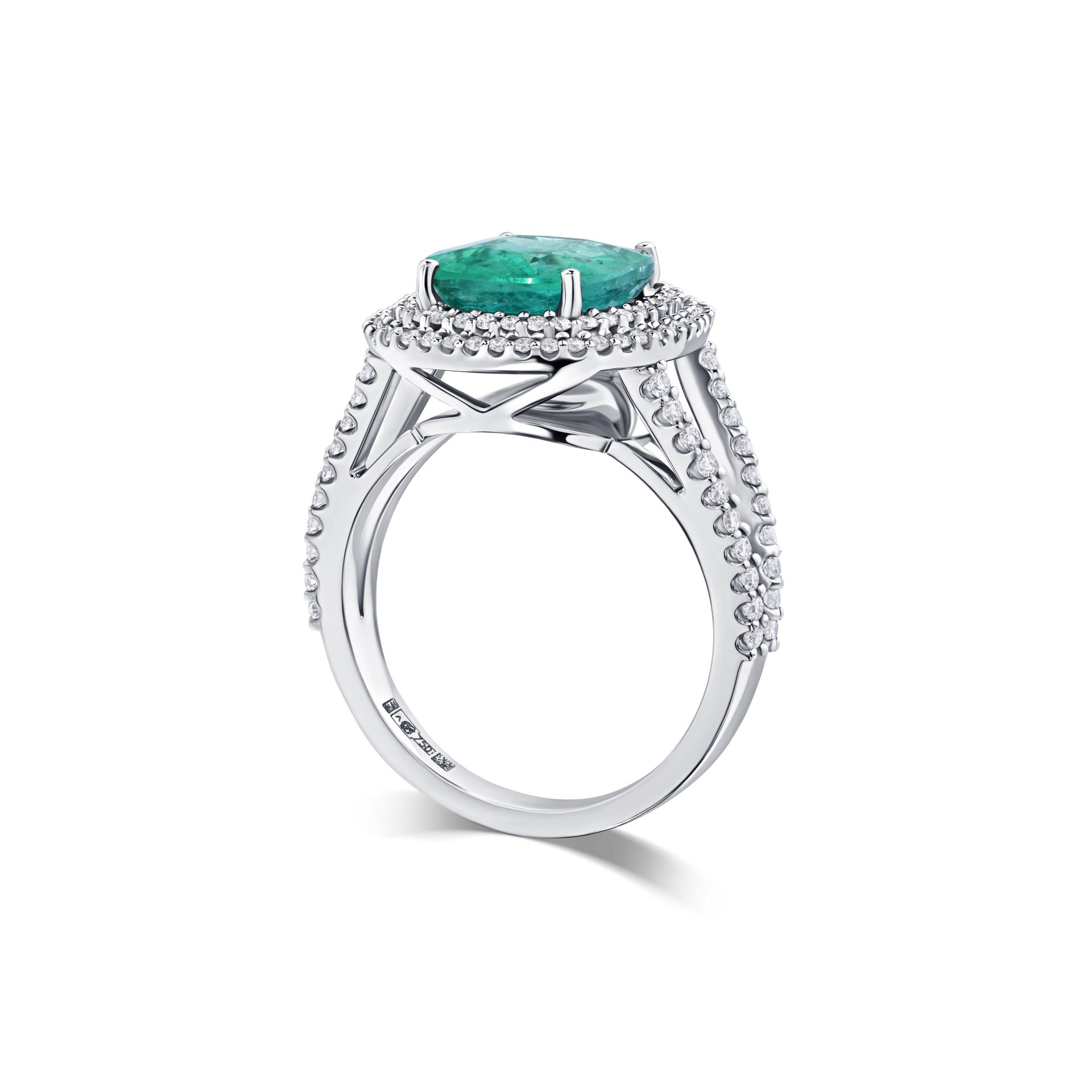 Это кольцо от ювелирной дизайн-студии Parure Atelier привлекает внимание своим изысканным дизайном и великолепием. Центральный камень – изумруд весом 2.79 карат, огранки кушон, который окружен яркими бриллиантами общим весом 0.524 карата. Белое золото 750 пробы подчеркивает благородство и элегантность изделия, придавая ему современный и утонченный вид. Боковые камни круглой огранки создают яркий контраст с насыщенным зелёным цветом изумруда, делая кольцо идеальным украшением для особых случаев. Это уникальное кольцо – результат безупречного мастерства и творческого подхода наших ювелиров, способно стать ценным дополнением к вашей коллекции. Приобретая его, вы делаете выбор в пользу настоящего искусства и высокого качества.