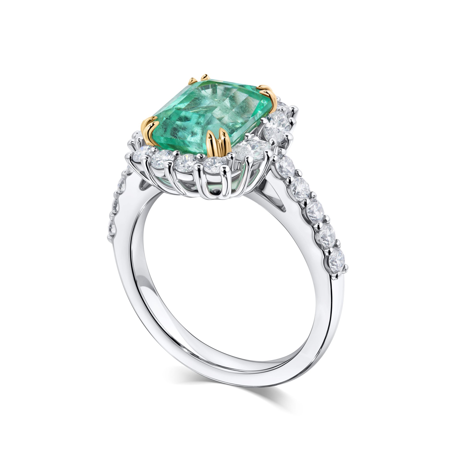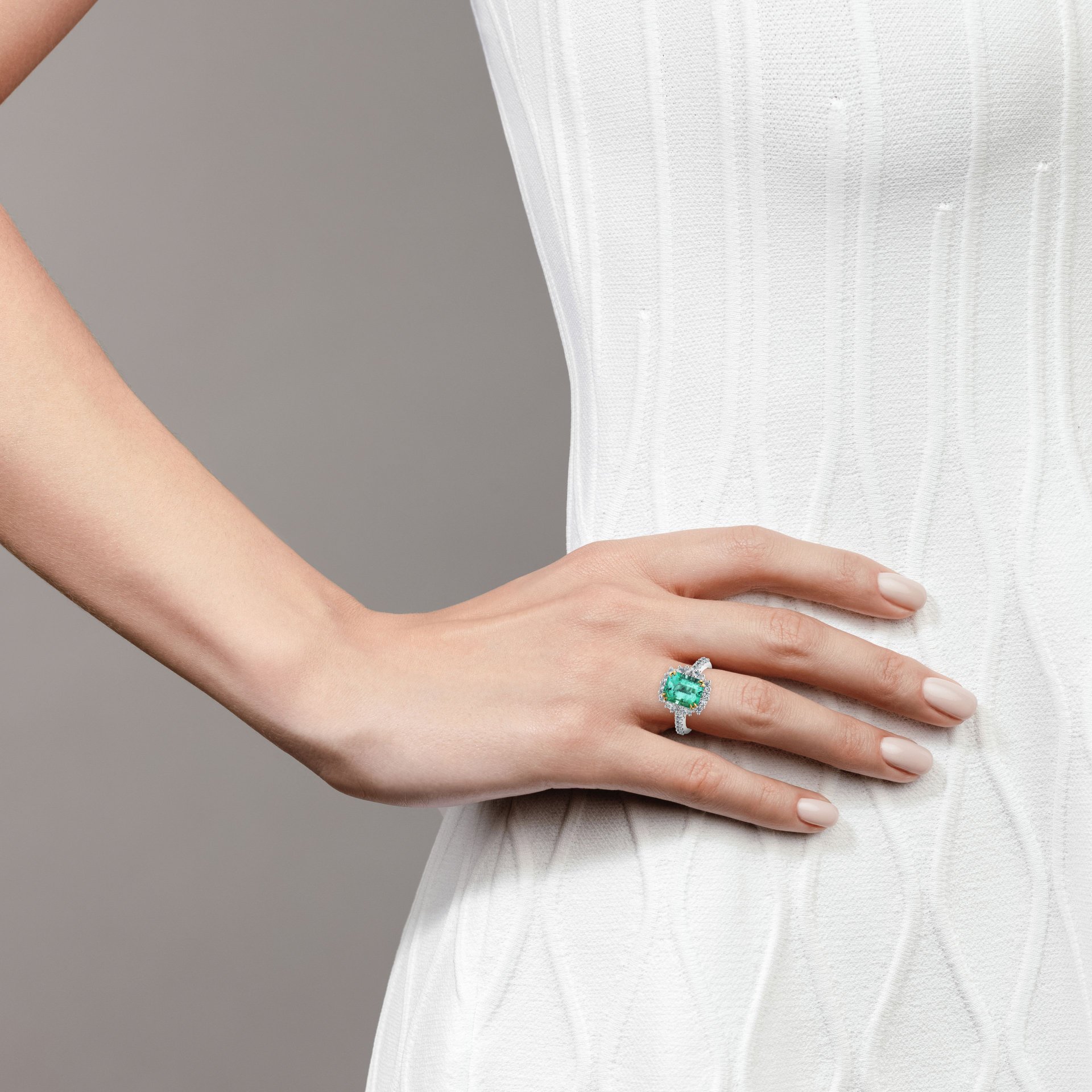 Кольцо с изумрудом 3.09 карат — это воплощение изысканности и утончённого стиля. Центральное место в этом украшении занимает великолепный изумруд весом 3.09 карат, который поражает своей насыщенной зеленью и прозрачностью. Камень окружён сияющими бриллиантами, подчёркивающими его природную красоту и создающими эффектный контраст. Обрамление из белого золота придаёт кольцу современный и элегантный вид, подчёркивая блеск каждого элемента.