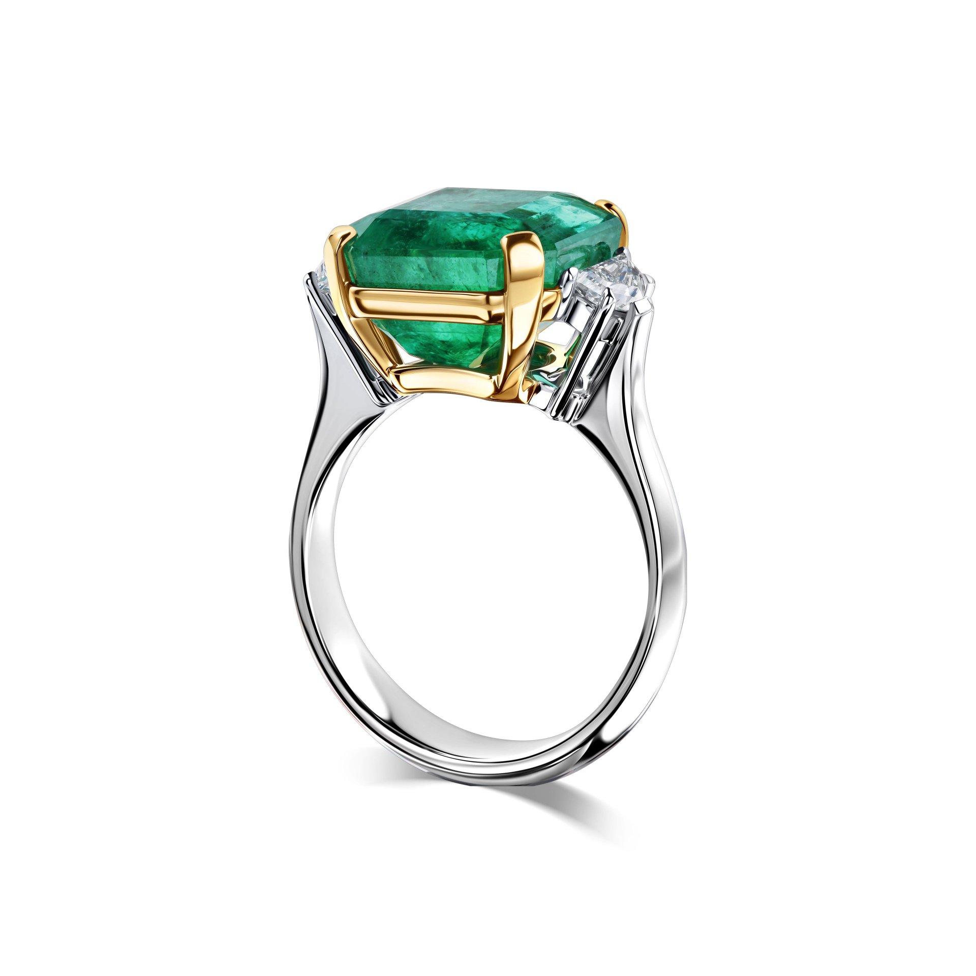 Данное кольцо отличается уникальным сочетанием классики и современности, что делает его идеальным выбором для тех, кто ценит время и качество. Центральный камень – изумруд весом 8.15 карат, огранённый в форме октагона, придаёт украшению особую привлекательность. Камень имеет насыщенный зелёный цвет, который естественным образом привлекает взгляды и подчеркивает изысканный вкус его владельца.