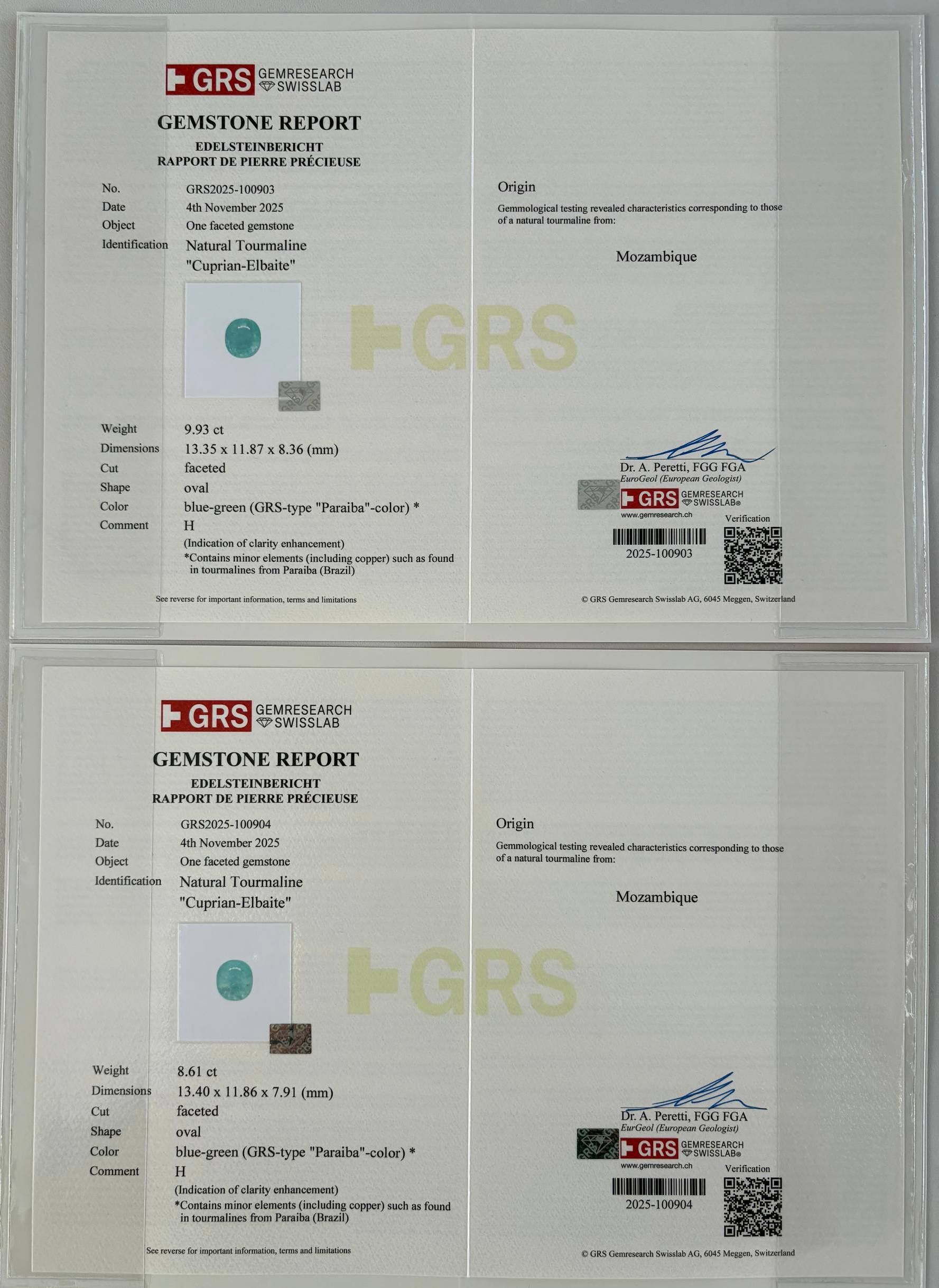 Пара турмалинов параиба 9.93 и 8.61 карат