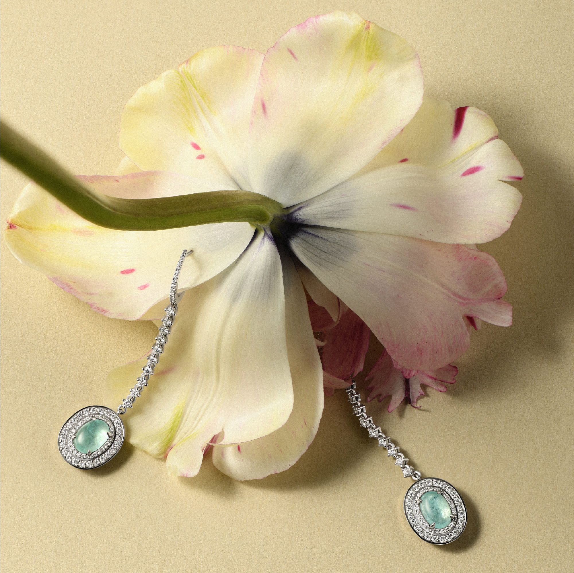 Эти серьги от Ювелирной дизайн-студии Parure Atelier станут идеальным дополнением к вечернему наряду, добавляя нотку роскоши и стиля. Турмалины Параиба, известные своей редкостью и глубиной цвета, делают это украшение поистине особенным.