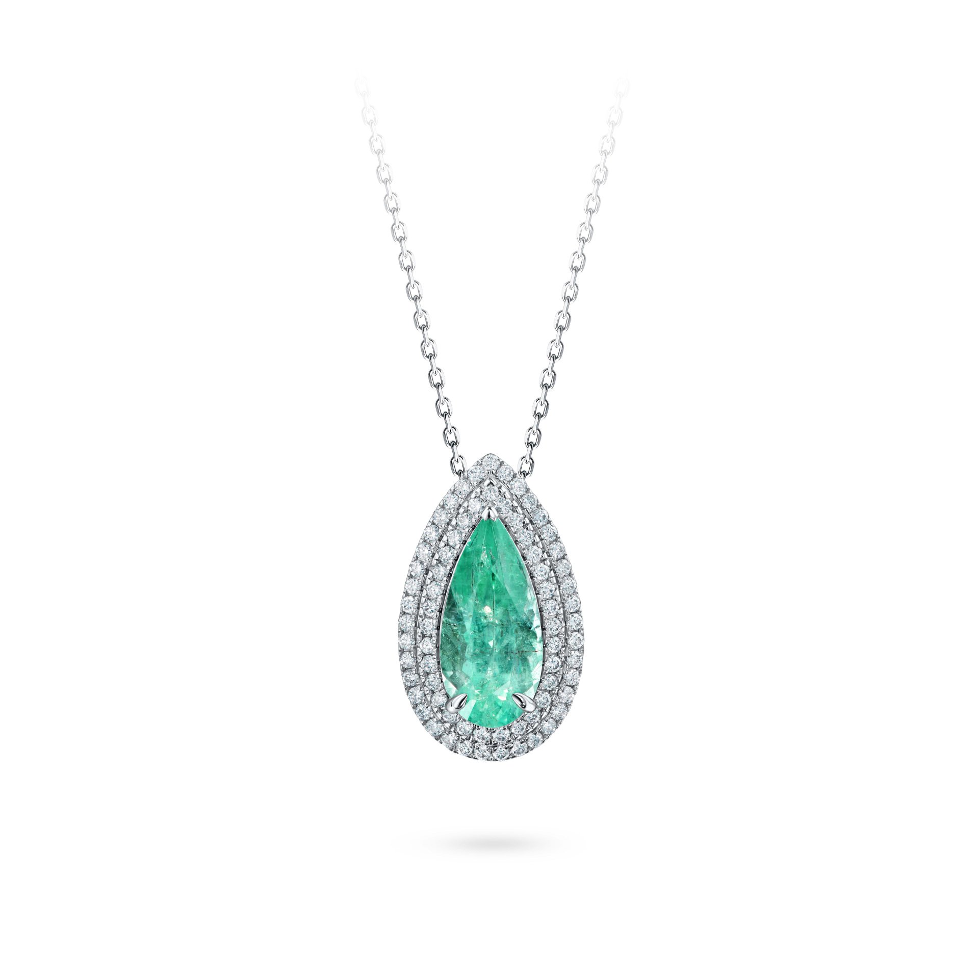 Металл белого золота подчеркивает яркость камня, создавая гармоничное сочетание с бриллиантами. Эта подвеска станет изысканным дополнением к вашему образу, добавляя нотку элегантности и утончённости.