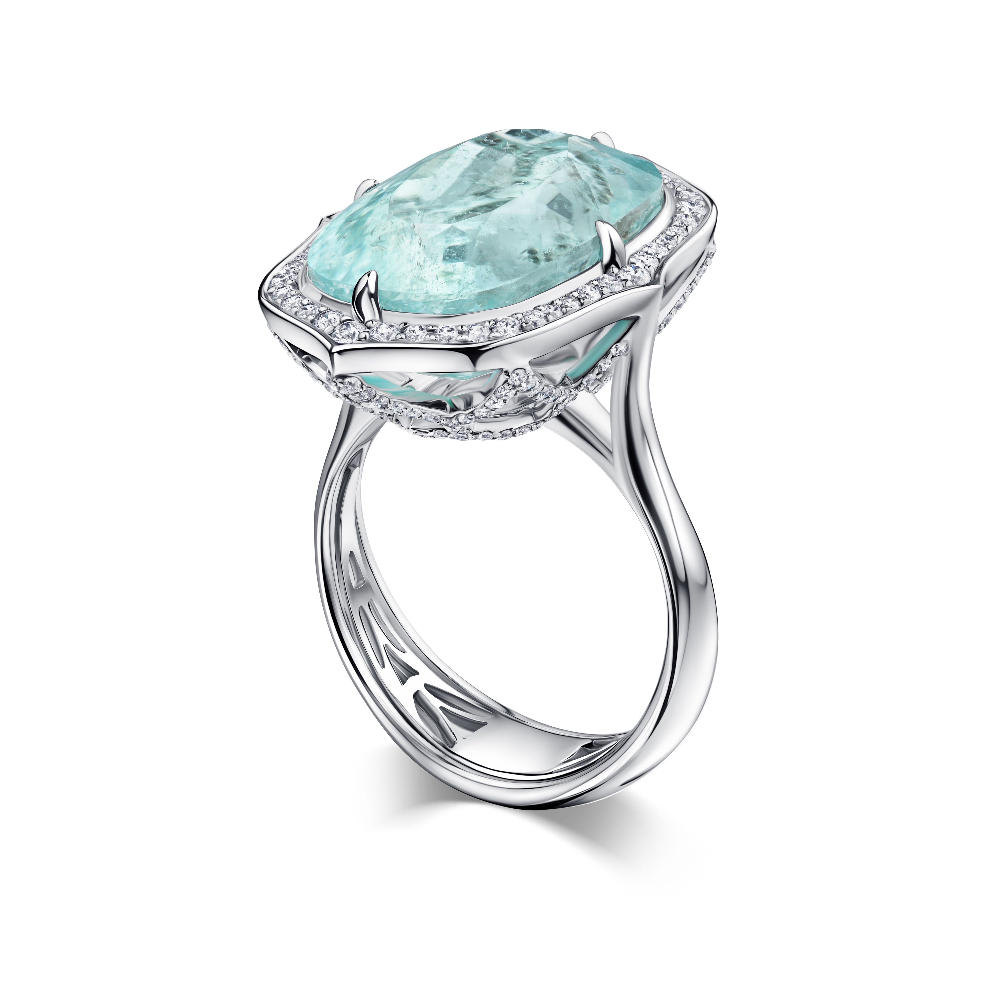 Кольцо с турмалином Параиба 13.99 карат — это истинное воплощение изысканности и утонченности. Центральный камень, турмалин Параиба, весом 13.99 карат, привлекает внимание своей уникальной аквамариновой палитрой, которая словно переносит вас в мир тропических лагун. Обрамление из белого золота подчеркивает его природную красоту, создавая гармоничный контраст и добавляя изделию особый шарм.