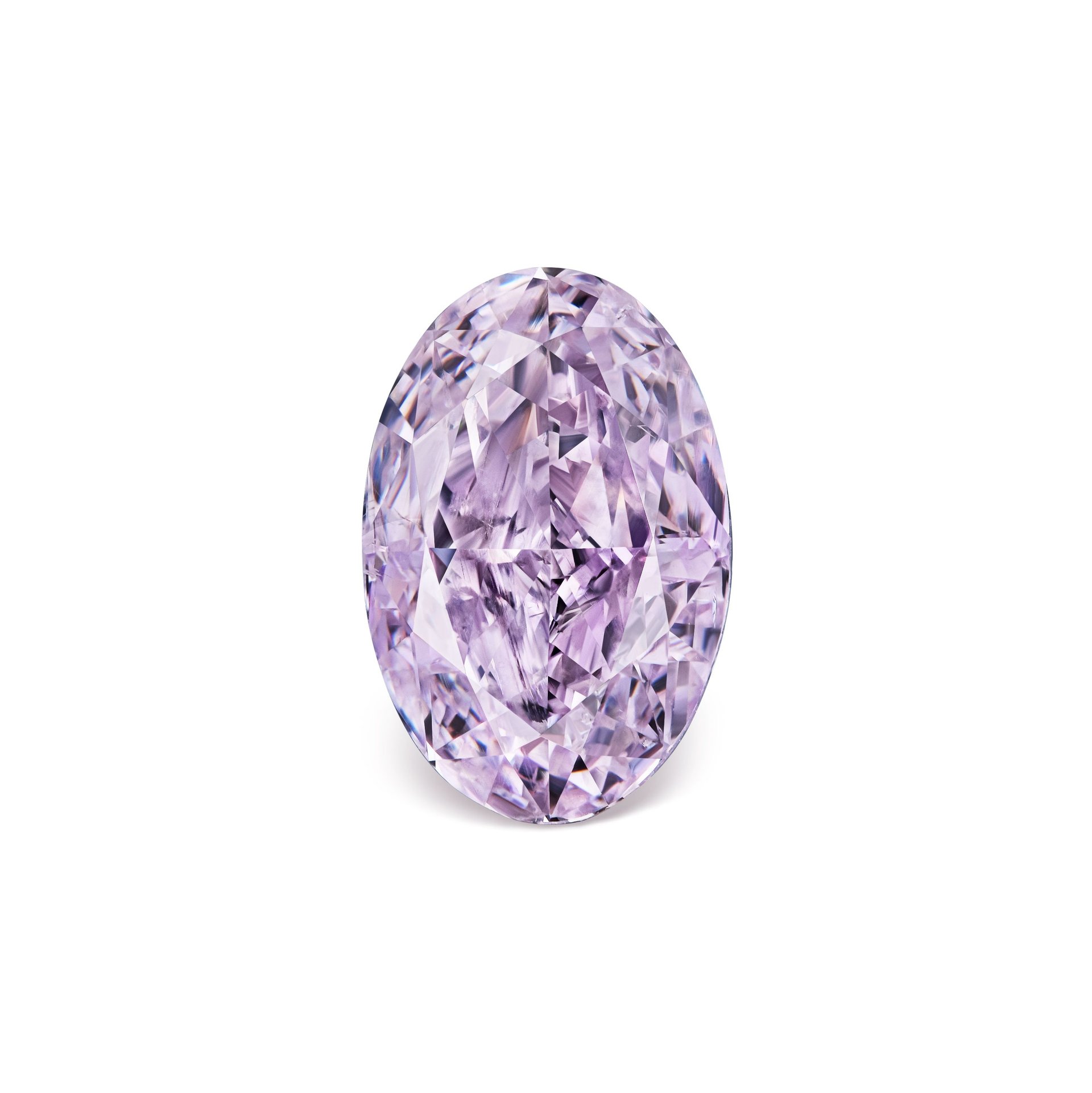 Фантазийный розовый бриллиант с лиловым оттенком. Подобные бриллианты появляются на международном рынке 2-4 раза в год, в среднем на каждый такой экземпляр приходится 700 000 обычных бриллиантов.