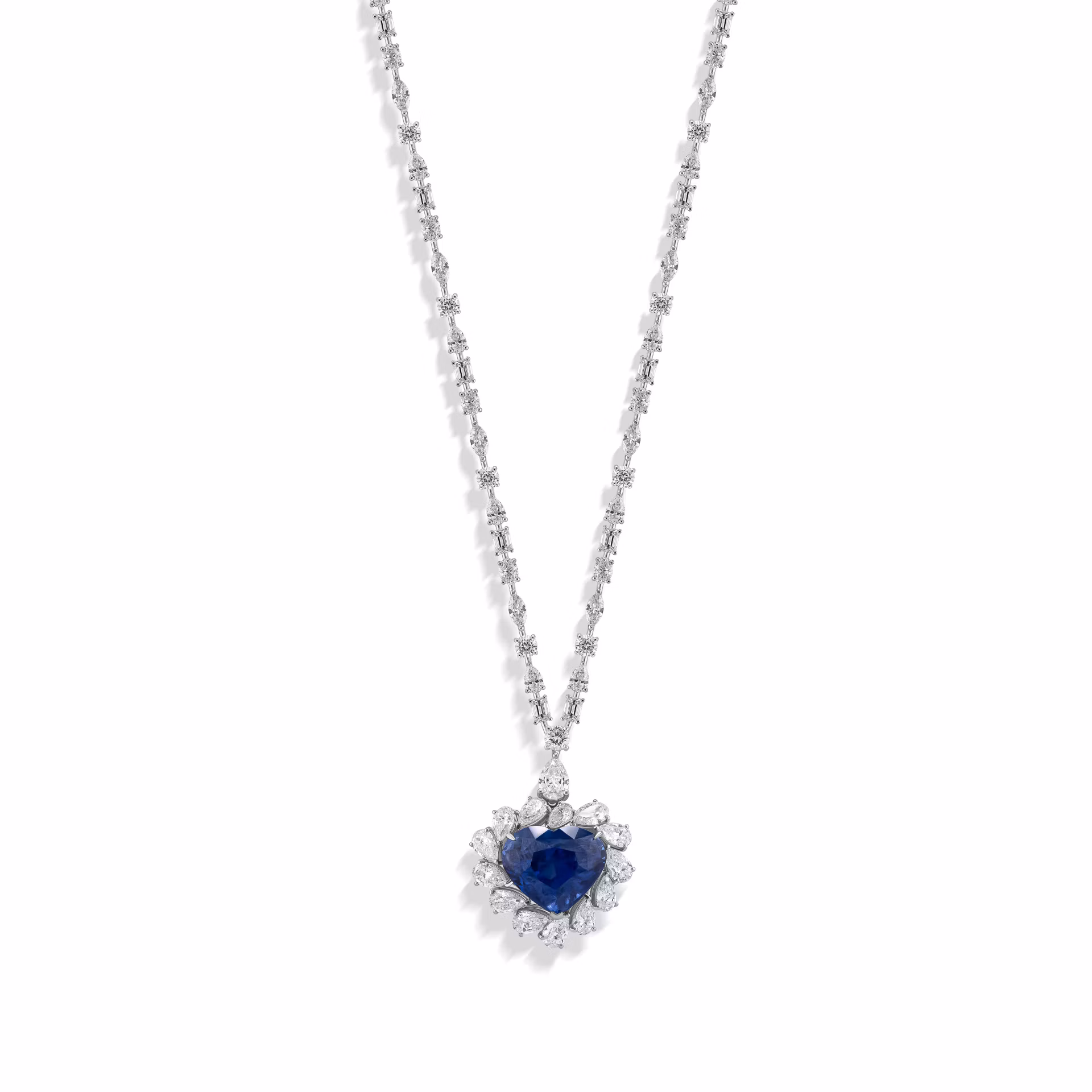 Артикул: SAP153Кольцо-трансформер с сапфиром 19.74 карата выделяется крупным центральным камнем в форме сердца, который привлекает внимание глубоким синим оттенком. Сапфир весом 19.74 карата обладает высокой прозрачностью и насыщенностью цвета, что подчеркивает его природную красоту и редкость. Вокруг центрального камня расположены аккуратные бриллианты грушевидной огранки, создающие эффект сияния и визуально увеличивающие размер украшения. Основой изделия служит белое золото, гармонично дополняющее холодные оттенки сапфира и бриллиантов.