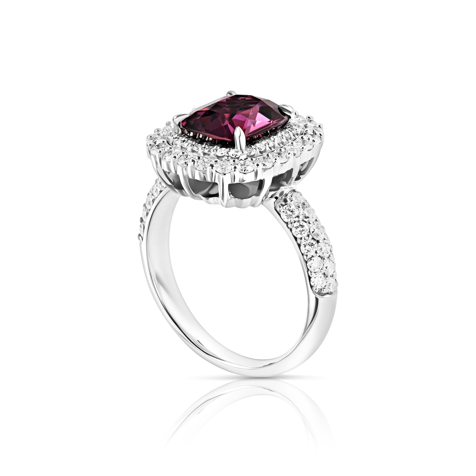 Кольцо от ювелирной дизайн-студии Parure Atelier представляет собой сочетание утончённого дизайна и высококачественных материалов. Центральный камень – шпинель весом 3.03 карата, огранённый в форме кушон, выгодно подчёркивает благородную текстуру белого золота 750 пробы. Окружённая россыпью боковых камней, бриллиантов весом 0.995 карата, шпинель создаёт удивительную игру света и блеска. Круглая огранка бриллиантов придаёт украшению дополнительное сияние. Это кольцо станет ярким дополнением любой коллекции, сочетая в себе современную элегантность и классическую красоту драгоценных камней.