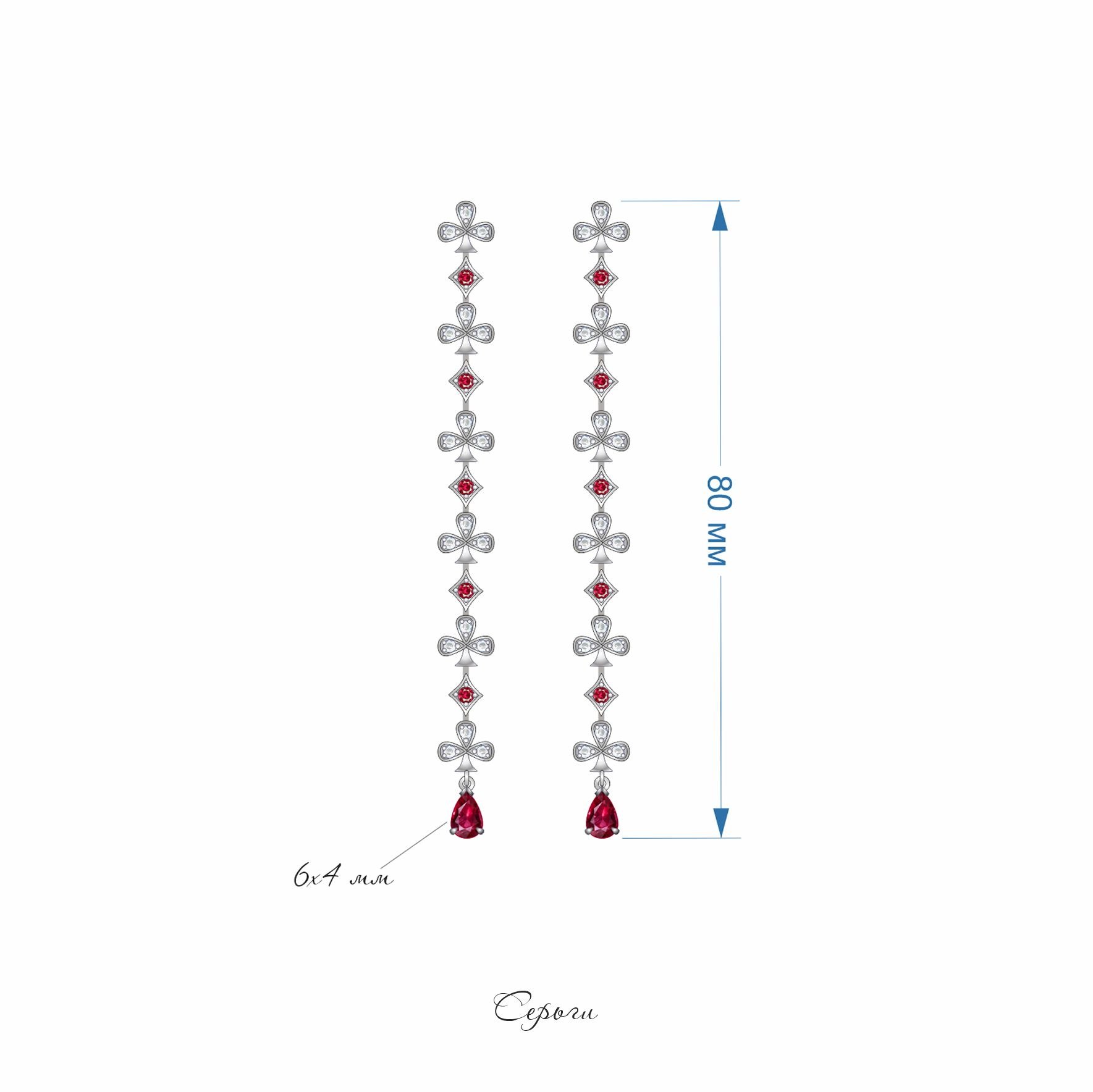 Пусеты «Трефы и бубны» — это воплощение элегантности и изысканности. Изготовленные из белого золота, они поражают своей утонченной композицией, в которой центральное место занимают бриллианты, рубины и гранаты. Каждый элемент тщательно подобран, чтобы создать гармоничный ансамбль, отражающий изящество и стиль.