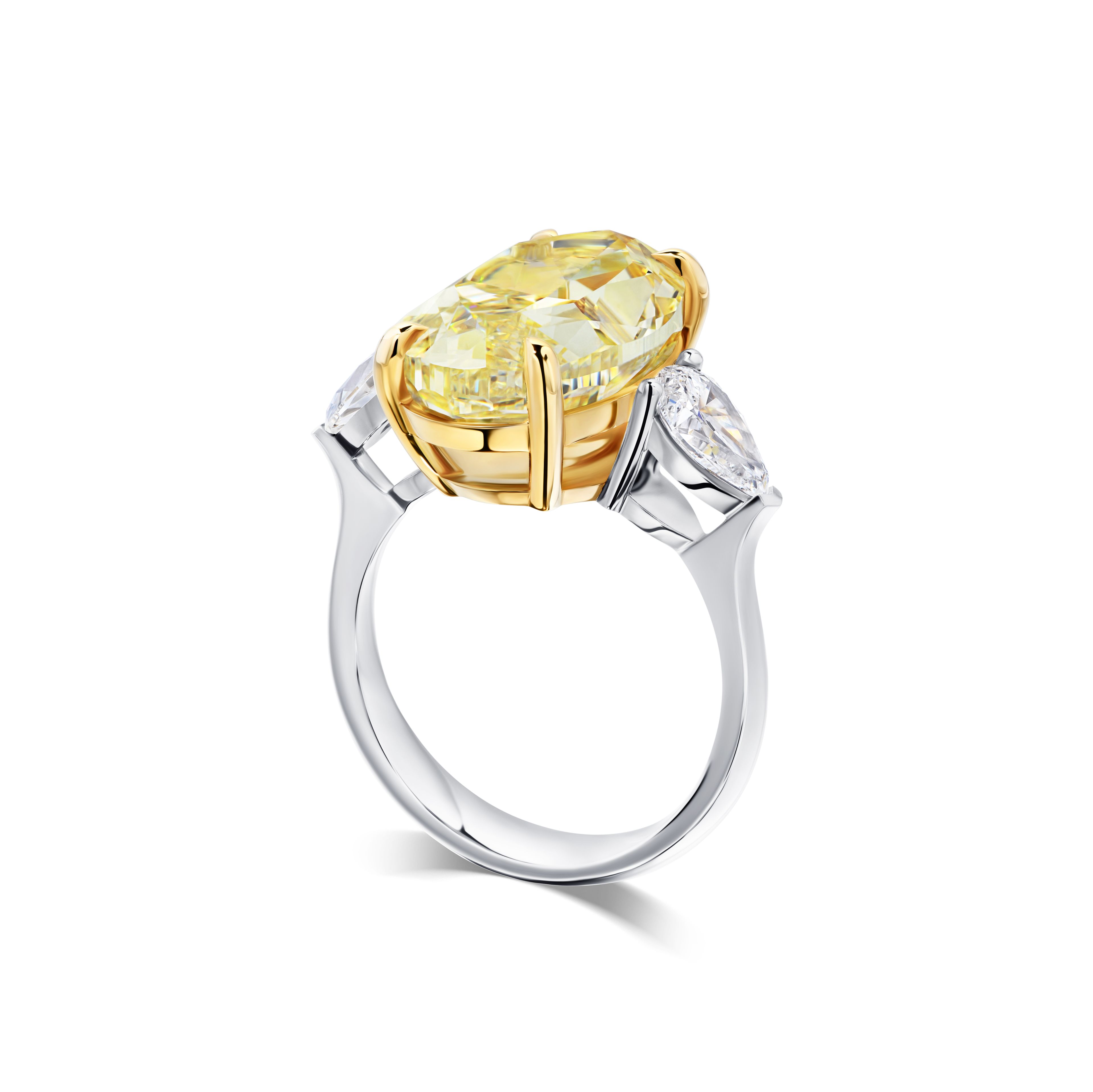 Артикул: R5213Это элегантное кольцо с центральным желтым бриллиантом весом 10.01 карата и овальной огранкой является ярким примером утончённого ювелирного мастерства. Изготовленное из белого золота 750 пробы, оно дополнено двумя боковыми бриллиантами грушевидной огранки весом 0.50 и 0.52 карата каждый. Желтый бриллиант центрального камня отличается насыщенным цветом и безупречной огранкой, что придает изделию уникальный характер и эффектный блеск. Стильное сочетание белого золота и желтого бриллианта создаёт изысканный контраст, подчеркивающий драгоценный камень. Кольцо от ювелирной дизайн-студии Parure Atelier — это воплощение гармонии традиций и современного дизайна. Этот уникальный аксессуар станет идеальным дополнением для ценителей эксклюзивных украшений.
