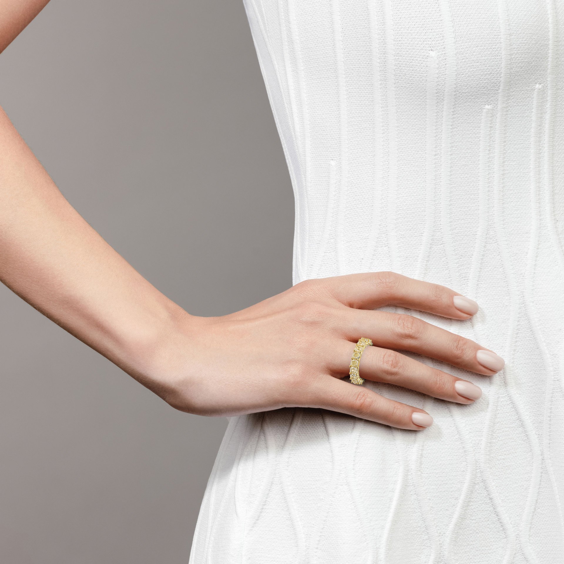 Откройте для себя исключительное кольцо-дорожку от ювелирной дизайн-студии Parure Atelier, великолепно оформленное из благородного желтого золота 750 пробы. Это изделие украшено россыпью желтых бриллиантов общим весом 7.485 карат, каждый из которых тщательно отобран и обработан в классической огранке кушон. Данное кольцо является воплощением изысканности и редкостного мастерства, придающего владельцу уверенности в каждом жесте. Желтые бриллианты известны своей яркостью и теплотой цвета, которые подчеркивают глубину и блеск золотой оправы. Кольцо Parure Atelier — это не только украшение, но и вложение в предметы с историей, передающиеся из поколения в поколение. Этот эксклюзивный аксессуар станет идеальным выбором для особенных моментов жизни и выразительным подарком для дорогого человека.