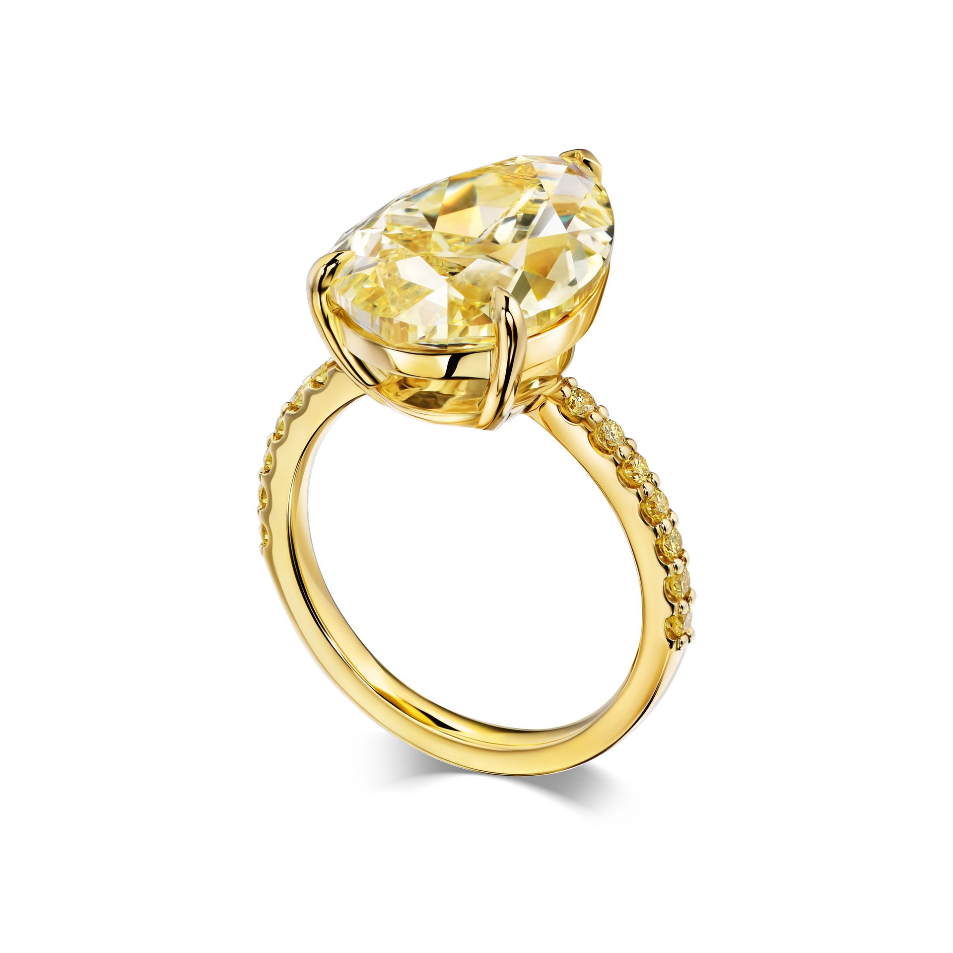 Кольцо с желтым бриллиантом 8.49 карата — это воплощение солнечного света в ювелирном искусстве. Центральный камень в форме капли привлекает внимание своим насыщенным оттенком и изысканной огранкой, которая подчеркивает его природную красоту. Желтое золото оправы гармонично дополняет сияние бриллианта, создавая эффект теплого свечения на руке.
